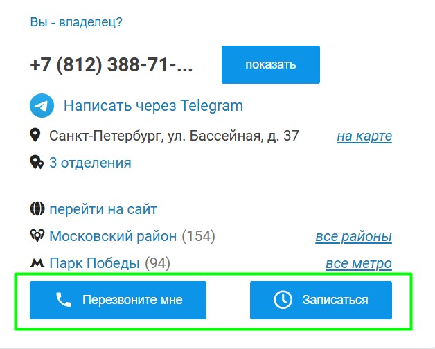 18. Кнопки «Записаться» и «Перезвоните мне»